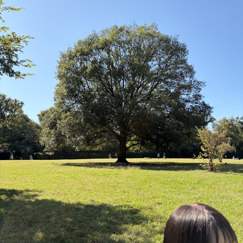 ここは、公園の古代芝生広場。うちでは大型犬を飼っていて、犬も一緒にピクニックをします。